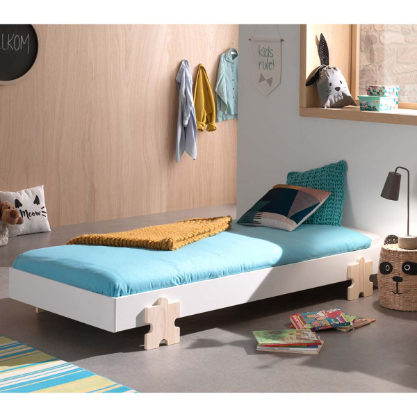 Mit dem Puzzle Kinderbett von Dream Tree schaffen Sie eine lustige Atmosphäre im Kinderzimmer. Das Puzzle Kinderbett 90 x 200 cm hat ein schönes Design mit Puzzleteilen als Beine. Das Dream Tree Kinderbett ist aus Kiefernholz gefertigt und hat einen Lattenrost. Das weiße Kinderbett hat eine Matratzengröße von 90 cm x 200 cm und ist für Kinder ab 4 Jahren mit einem maximalen Gewicht von 75 kg geeignet. Wenn Sie mehrere Puzzle-Kinderbetten haben, können Sie die Betten einfach übereinander stapeln, um Platz im Kinderzimmer zu schaffen. Die Matratze kann im Bett belassen werden, da die Puzzleteile für genügend Höhe sorgen.