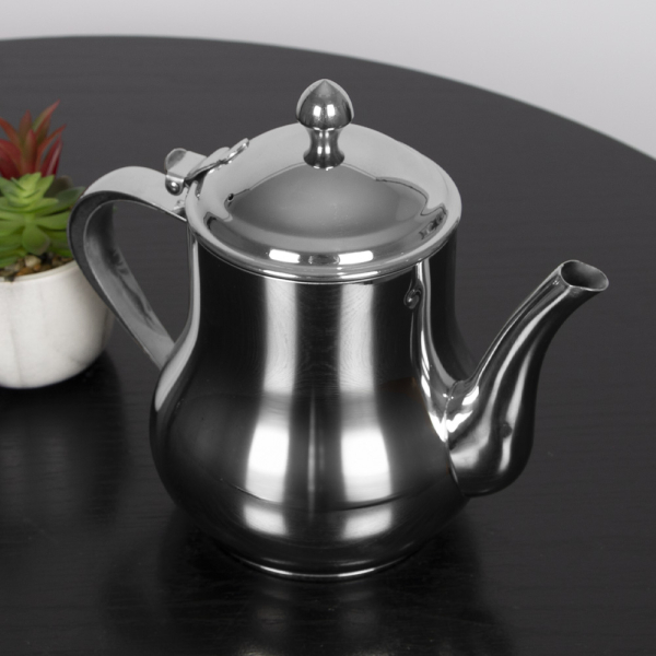 Mit der Teekanne Nador von Bama können Sie auf klassische Weise echten marokkanischen Tee, frischen Minztee oder einfach Ihren Lieblingstee aufbrühen. Die Nador hat ein einzigartiges Design mit einer runden Form. Dank des langen Ausgusses gießen Sie den heißen Tee gleichmäßig aus. Die silberne Teekanne ist aus robustem 18/10-Edelstahl mit hochglänzender Oberfläche gefertigt. Die Gießkanne lässt sich leicht mit einer Hand bedienen. Sie können zum Beispiel den Klappdeckel einfach mit dem Daumen öffnen. Diese Teekanne von Bama hat ein Fassungsvermögen von 1,36 Litern, der Boden hat einen Durchmesser von 10 cm.