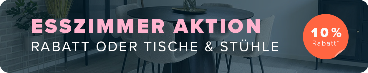 Möchten Sie Ihrem Esszimmer einen neuen Look verpassen? Dann ist jetzt der richtige Zeitpunkt, um einen neuen Esstisch und Esszimmerstühle zu kaufen! Genießen Sie unsere Esszimmer-Aktion mit 10% Rabatt auf Esstische und Esszimmerstühle ab 80 €, die vom 15. Februar 2024 bis zum 18. März 2024 gültig ist. Verwenden Sie den Rabattcode ZESSO-E10*