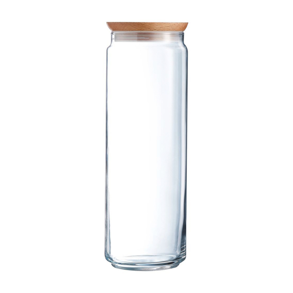 Mit den Pure Jar Vorratsgläsern von Luminarc können Sie verschiedene Lebensmittel stilvoll aufbewahren! Die Pure Jar Vorratsgläser sind aus Glas und haben einen Holzdeckel. Dank des Holzdeckels sind die Gläser luftdicht. Die Kombination aus transparentem Glas und Holz verleiht Ihrer Küche eine schöne Note. Die multifunktionalen Gläser können zur Aufbewahrung von Mehl, Reis, Quinoa, Zucker, Nudeln, Trockenobst und vielem mehr verwendet werden. Der Pure Jar hat ein Fassungsvermögen von 2 l.