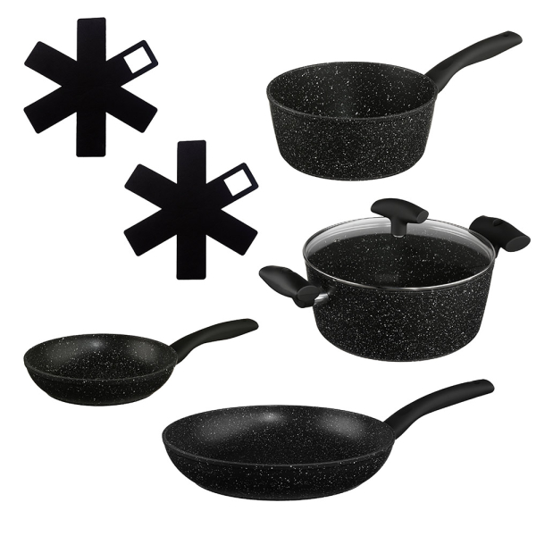 - Aluminium-Kochtopf Set mit Steineffektbeschichtung