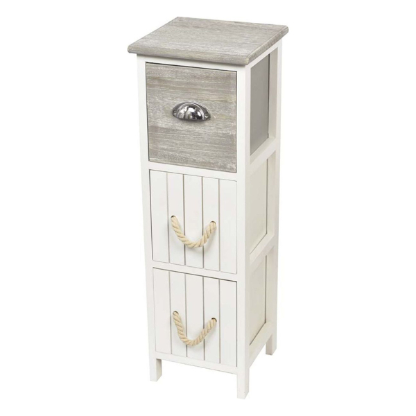 Der Schrank mit Schubladen Brent von Lamento ist ein schöner Schrank, den Sie in mehreren Räumen Ihrer Einrichtung aufstellen können. Der Schrank mit Schubladen hat ein schönes Design mit hellen Farben und ist aus MDF und Holz gefertigt. Die Kombination aus Weiß und Grau sorgt für einen schönen Look und die 3 Schubladen bieten zusätzlichen Stauraum in Ihrem Zuhause. Der Schrank mit Schubladen Brent hat eine Breite von 25 cm, eine Tiefe von 25 cm und eine Höhe von 77 cm.
