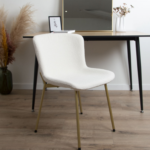 Milton & Oldbrook Bouclé Esszimmerstuhl Cascais Weiß - Gold