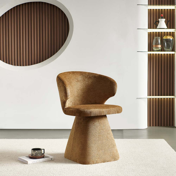 • Luxuriöser Stoff: Weicher, brauner Stoff mit Textur, der eine warme, einladende Atmosphäre schafft.