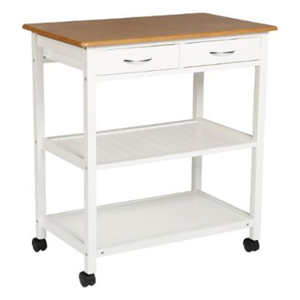Das Mobil Beistelltisch Eazy Living ist ein vielseitig für jeden Raum. Holztisch auf Rädern ist praktisch in der Küche, Bad, Terrasse oder Wohnzimmer und verleiht dem Raum eine frische Landatmosphäre. Die Agnan Beistelltisch hat einen permanenten Bambus- Tisch , und einen weißen Rahmen mit 2 Böden und 2 Schubladen . Gut für viele zusätzlichen Stauraum. Dank der 4 weichen Rollen Sie können auch einfach auf den Tisch bewegen. Dieser Holztisch auf Räder hat eine Gesamthöhe von 87 cm und 78 cm lang.
