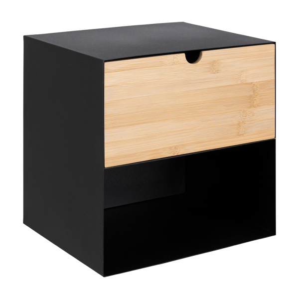 Ein schwebender Nachttisch ist der perfekte Schrank für Ihr Bett, denn Sie können die Höhe selbst bestimmen. So ist Ihr Nachttisch nie wieder zu hoch oder zu niedrig für Ihr Bett. Der Wand Nachttisch Lyra von Smuk ist dank seines schönen und praktischen Designs sehr zu empfehlen. Neben der Höhe können Sie auch wählen, ob Sie die Schublade oben oder unten im Schrank haben möchten. Sie können den Smuk-Nachttisch mit maximal 20 kg belasten. Der Lyra-Schrank ist aus Metall und Bambus gefertigt und kann nicht nur als Nachttisch, sondern auch als Aufbewahrungsschrank im Wohnzimmer, Bad oder Flur verwendet werden. Der Schrank hat eine Breite von 30 cm, eine Tiefe von 25 cm und eine Höhe von 30 cm.