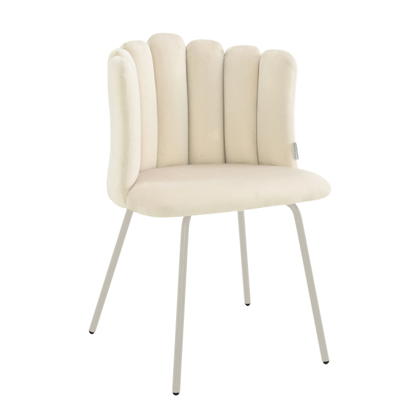 - Metallbeine: Die schlanken, beigen Beine setzen einen modernen Kontrast und unterstreichen die elegante Optik des Stuhls.