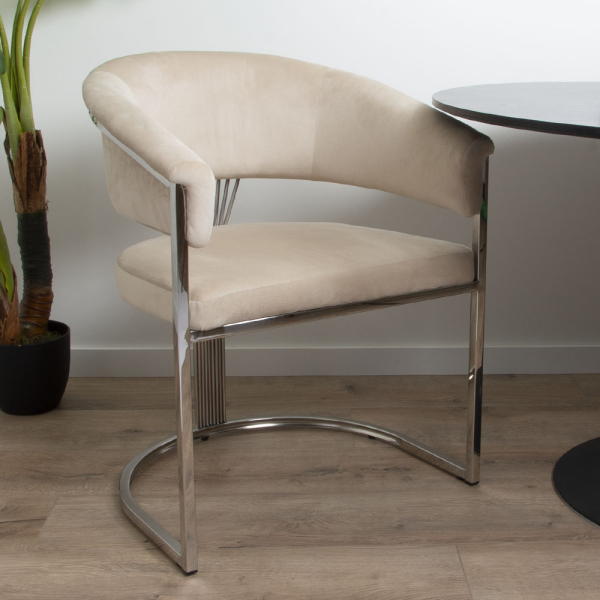 Milton & Oldbrook Samt Esszimmerstuhl Valletta Beige - Silber