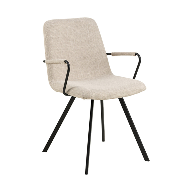 Sind Sie ein Fan von verschiedenen Stoffen und Texturen in Ihrer Einrichtung? Dann sollten Sie einen Blick auf den Elena Esszimmerstuhl von Smuk werfen. Dieser Esszimmerstuhl von Smuk hat eine schöne Polsterung aus einem strukturierten Stoff mit zweifarbigem Effekt. Der beigefarbene Stoff ist leicht zu kombinieren und sorgt für einen weichen Look. Der Elena steht auf schwarz lackierten, pulverbeschichteten Metallbeinen. Der Stuhl verfügt über schlanke Armlehnen, die einen stilvollen Akzent setzen. Der beigefarbene Esszimmerstuhl hat eine Breite von 55,5 cm, eine Tiefe von 50,5 cm und eine Höhe von 85 cm.