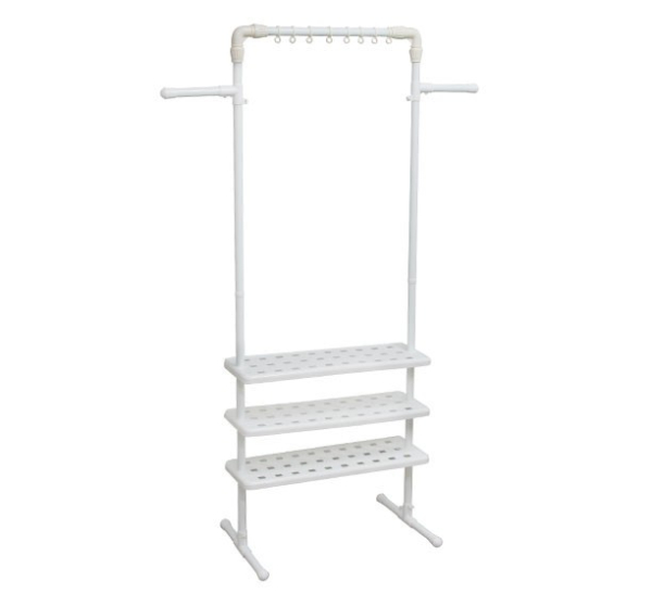 L'arrimage multifonctionnel de Baytex vous pouvez créer complètement selon vos besoins. Avez-vous besoin de vêtements supplémentaires en rack étagères avec des chaussures, vous placez trop court dans la salle de bain ou avez-vous comme quoi de mieux organisé? Ce support réglable vous pouvez faire quoi que ce soit, de badkamerrek à étendoir. De plus, vous pouvez installer le rack autoportant sans outils afin que vous puissiez facilement déplacer ou réarranger. La salle de bain Baytex et porte des vêtements est fourni avec des cintres 8 et 3, étagères amovibles.