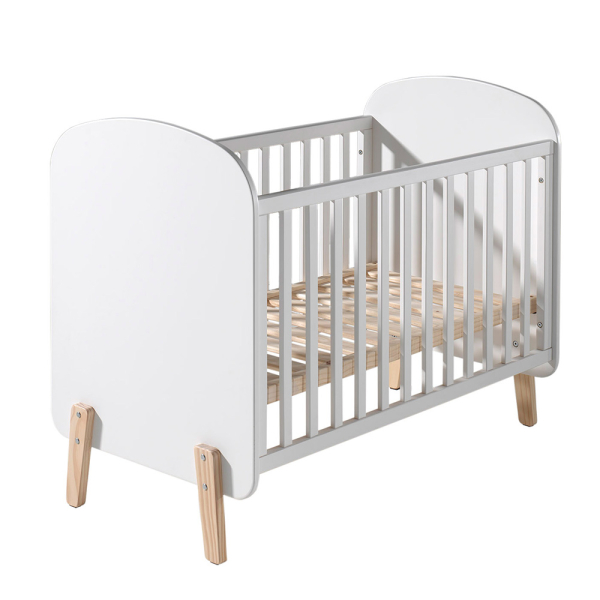Le lit bébé Lux 60x120 cm apporte une atmosphère chaleureuse dans la chambre de bébé. Le lit d'enfant est fabriqué en MDF laqué blanc et présente des extrémités de tête et de pied arrondies. Le lit d'enfant repose sur 4 pieds en bois massif. Le sommier du lit blanc est réglable à 3 hauteurs, ce qui vous permet de l'abaisser dès que le bébé peut se hisser.