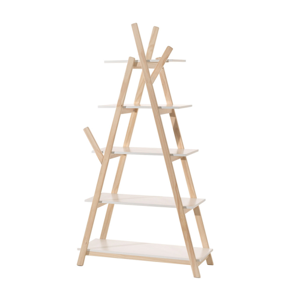 La bibliothèque unique de rêve arbre apporte plaisir une fois dans chaque pépinière. sous la forme d'un tipi capture l'imagination de tous les enfants! Le rack élégant peut être utilisé pour stocker des livres, des jouets ou des décorations. La bibliothèque Style scandinave serrés les tableaux blancs en MDF laqué et une belle finition de couleur naturelle en pin massif. La boîte est de 90 cm de long, 34 cm de largeur et 168,7 cm de haut.