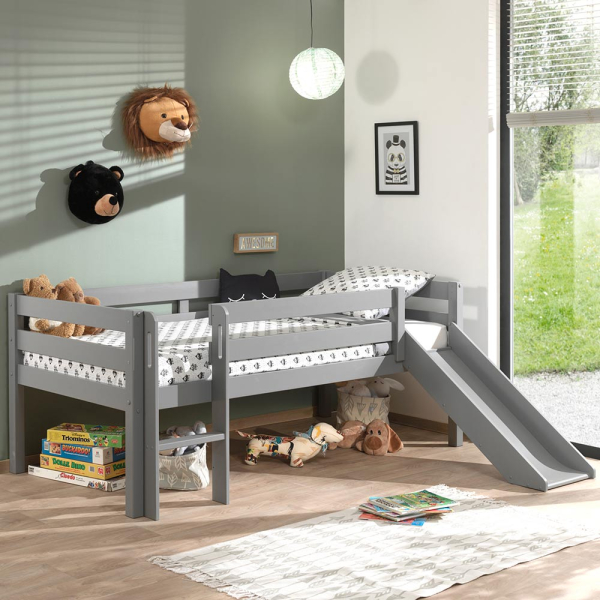 Dream Tree Lit Mi-Hauteur 90 x 200 cm avec Toboggan Fauna Gris