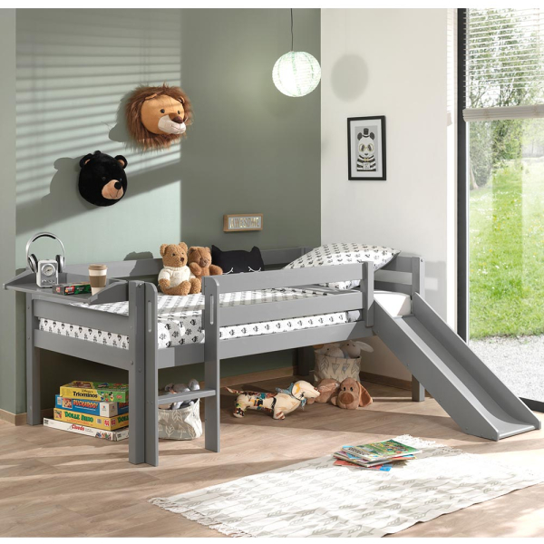 Dream Tree Lit Mi-Hauteur 90 x 200 cm avec Toboggan & Tablette Suspendue Fauna Gris