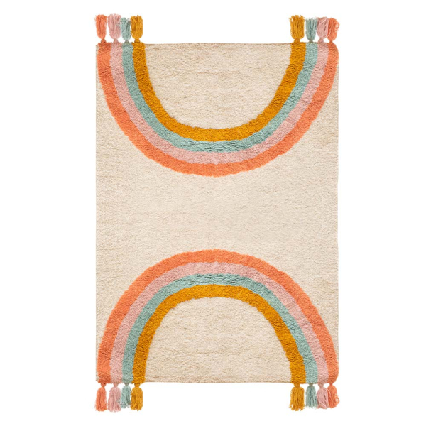 - Tapis pour enfants avec arcs-en-ciel et franges