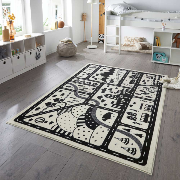 Décorez la chambre d'enfant ou la salle de jeux avec ce joli tapis Landscapes de Hanse Home. Le tapis crème a un imprimé avec des maisons, des arbres, des véhicules, des tipis, des rails de train, des rails de voiture et plus. Ce tapis rectangulaire est fabriqué en polypropylène et possède un dos en jute. Le tapis pour enfants Landscapes est agréable et doux pour les pieds et illumine la chambre des enfants. Le tapis Hanse Home a une taille de 80 cm par 150 cm et a une épaisseur de 0,9 cm.