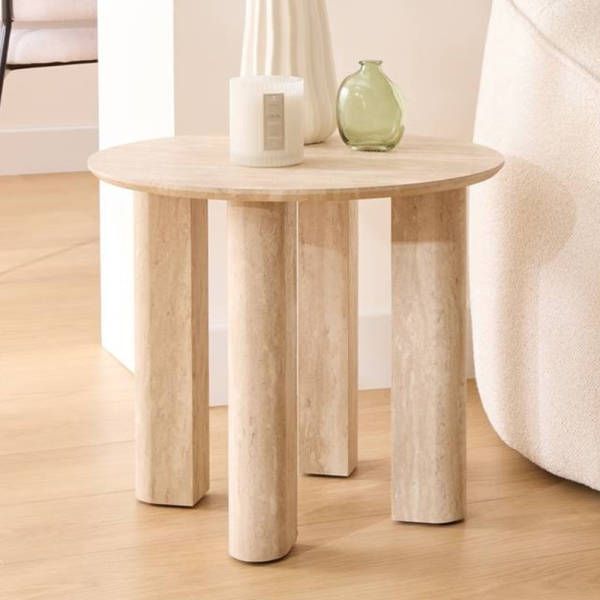 Eazy Living Table d’Appoint Ø 50,5 cm Maena Effet Travertin