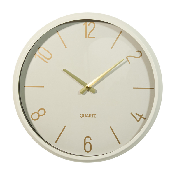 - Design moderne : Les aiguilles dorées en aluminium et le cadran blanc beige créent un effet saisissant, à la fois contemporain et intemporel.