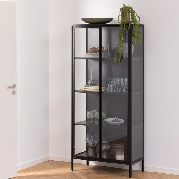 Smuk Armoire Vitrine Davian Noir 80 x 40 x 180 cm