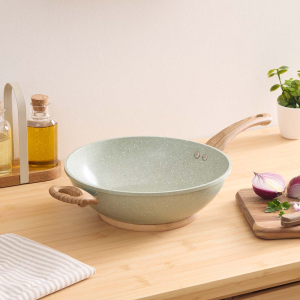 - Poids : Avec seulement 0,8 kg, ce wok est facile à manipuler, tandis que l’aluminium assure une répartition rapide et uniforme de la chaleur.