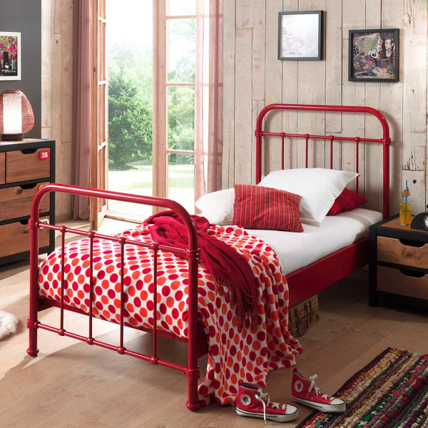 Le lit Morris de Dream Tree a un cadre de lit en métal avec des barreaux et s'adapte facilement au style de la chambre des enfants. Vous l'aimez rugueux ? Choisissez alors un design de chambre industriel. Vous rêvez d'une chambre romantique ? Placez ensuite d'autres accessoires de maison rurale dans la pièce. En outre, ce lit simple en métal 90x200 continue de séduire les étudiants et les adolescents, de sorte qu'il peut devenir une chambre d'adolescent ou d'étudiant. Le lit rouge a une largeur de 90 cm et est livré avec un sommier à lattes.