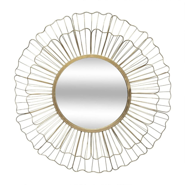 Optez pour le luxe dans votre intérieur avec le miroir Victoire d'Eazy Living. Ce miroir mural rond est fait de fer et de verre et a une forme de fleur. Le miroir à fleurs a un design élégant avec un miroir rond au milieu et 2 niveaux de pétales. Ce miroir doré peut être accroché dans différents styles de vie et peut facilement être combiné avec d'autres meubles et décorations. Le miroir mural Victoire d'Eazy Living a un diamètre de 67 cm et une épaisseur de 5 cm.