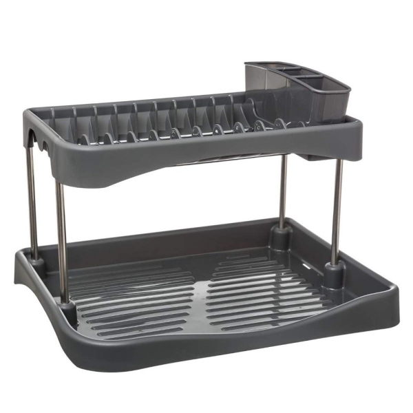 Damien égouttoir Eazy Living se compose de 2 niveaux et offre amplement d'espace pour les plats de drainage, des tasses ou d'autres plats. Dans le correspondant couverts plateau Vous pouvez sécher les couverts. égouttoir plastique a une forme compacte (42 cm x 31 cm x 29 cm) et donc facilement fait sur le comptoir. Un organisateur de cuisine indispensable!