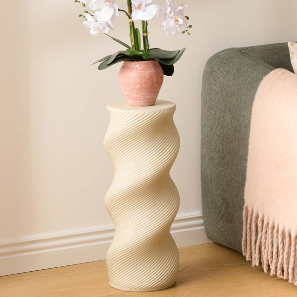 Apportez structure et caractère à votre intérieur avec la table pour plante Yvan d’Eazy Living. Cette table au design remarquable dans un ton beige neutre est un objet à la fois élégant et fonctionnel, parfait comme support de plante ou comme petite colonne décorative. Sa structure nervurée en spirale et son design haut et élancé créent une ambiance ludique à la fois moderne et intemporelle.