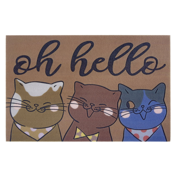 Vous cherchez un paillasson agréable ? Alors le paillasson Oh Hello de Leva est peut-être fait pour vous ! Le paillasson avec impression de chat est fabriqué en polyéthylène et possède un dos en TPE recyclé. Le paillasson est un bel ajout à votre intérieur grâce à son imprimé et ses couleurs amusantes. En plus d'être décoratif, le tapis est également fonctionnel. Vous pouvez donc essuyer vos chaussures sales et garder votre sol propre et net. Le tapis a une taille de 45 cm par 70 cm, et a une épaisseur de 0,6 cm.