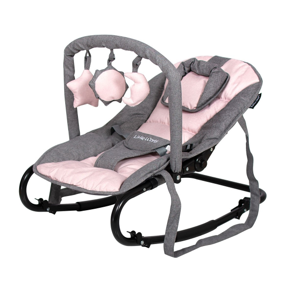 Les bébés peuvent se détendre dans le petit videur de Starwing du petit monde. Ce siège de relaxation confortable a une fonction de rebond et de fluctuation et peut être ajusté de différentes positions loft et assises. Le gris avec une chaise à bascule rose a également un joli jeu d'arc avec 3 jouets doux avec lesquels votre bébé peut profiter du calme. La Babyrelax Starwing peut être fixée à la balançoire ou en position fixe. Le dossier peut également être réglé jusqu'à 5 positions, allant complètement à une position assise droite. Et grâce à la ceinture de sécurité à 3 points, votre enfant est en toute sécurité dans le siège. De plus, le videur doux est équipé d'un appui-tête amovible et d'une protection antidérapante. Le revêtement amovible est lavable. Avec les poignées de transport, vous pouvez facilement déplacer le siège. Les sièges relaxants Starwing conviennent aux enfants de la naissance à environ 6 mois (poids maximum de 9 kg). Ce petit BLAND BONCERS sont disponibles dans différentes couleurs de mélange. Découvrez-les tous sur notre boutique en ligne!