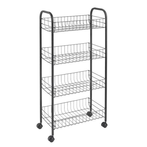 Pas plus de place dans votre cuisine, ou vous êtes à la recherche d'un organisateur pratique pour les serviettes et autres accessoires pour magasin? Chariot métal 4 paniers grillagés fournit un espace de stockage supplémentaire et est facile à déplacer grâce à 4 roulettes lisses . Le support en métal est usiné avec une exclusivité terme de revêtement tactile rendant anti-rouille. Le chariot Metaltex Ascona 4 étages est de 41 cm de long, 26 cm de profondeur et 86 cm de haut.