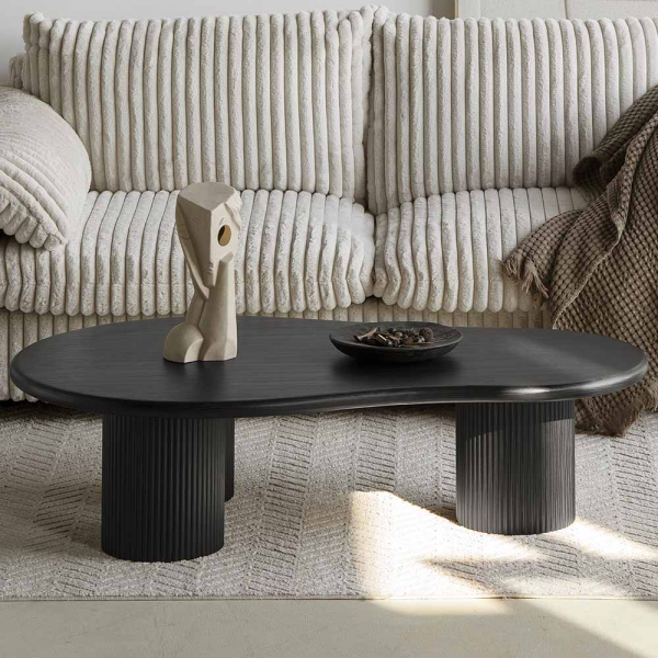 Découvrez le point focal de votre intérieur : la table basse Tovuz à forme organique. Cette table basse unique de Milton & Oldbrook est la pièce maîtresse idéale pour tout salon moderne. Sa forme organique offre une touche ludique mais élégante, tandis que ses pieds cylindriques et sa structure en bois noir respirent le luxe. Grâce à sa silhouette contemporaine, cette table s’intègre aussi bien dans des intérieurs industriels que dans des styles minimalistes et chaleureux.