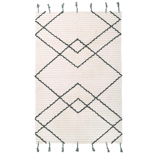 Vloerkleed Viktor Zwart 100x150 | NattiotKindertapijt kopen? Het Viktor vloerkleed 100x150 van Nattiot met zwart patroon en franjes zorgt voor een boho-sfeer en is machinewasbaar! Nattiot Tapis 100 cm x 150 cm Viktor NoirLe tapis Viktor de Nattiot apporte une ambiance cosy et bohème dans la chambre des enfants. Ce tapis en coton à fond antidérapant est agrémenté d'un motif graphique et de franges ludiques. Le tapis touffeté est facile à entretenir car il est lavable en machine. Et cela rend la vie un peu plus facile. En outre, le tapis Viktor à motif noir répond aux critères OEKO-TEX.