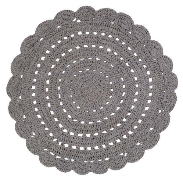crochet tapis Nattiot a un doux, chaud et hors du temps et apporte à la crèche une atmosphère chaleureuse. Depuis le tapis Alma est fait à la main, chaque vêtement a un modèle unique. Tapis gris foncé est faite 100% coton et diamètre de 120 cm . Un enfant tapis crocheté est aussi doux à jouer, donc dans le salon ou salle de jeux, cet idéal tapis Nattiot pour les enfants. Le tapis décoratif lavable en machine et donc très facile à entretenir. Parfait pour un garçon ou la chambre de fille!