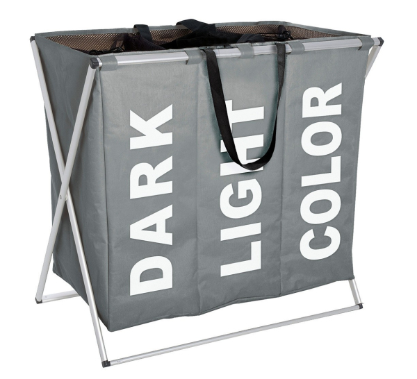 Le panier de buanderie Trio de Wenko est divisé en 3 grands compartiments afin que vous et vos colocataires puisse facilement trier le linge. Il est soigneusement mentionné dans quelle boîte la lumière, sombre ou colorée doit être collectée. Il y a un sac de lavage en treillis dans chaque compartiment d'une capacité de 43 litres. Avec un cordon de serrage, vous pouvez facilement fermer le sac afin que votre buanderie sale reste proprement à l'abri des regards. Le panier de blanchisserie trio est équipé de poignées pour que vous puissiez facilement déplacer le linge. Le panier à blanchisserie gris trio dispose d'un cadre en aluminium léger mais robuste de la forme de ciseaux. En conséquence, le panier est également facilement pliable lorsqu'il n'est pas utilisé. Vous cherchez un grand panier de buanderie? Voir la vaste gamme de paniers de buanderie sur notre boutique en ligne!