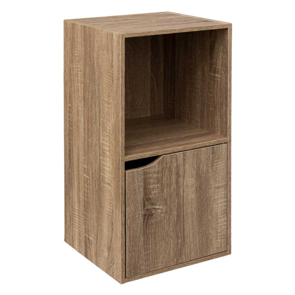 Vous êtes à la recherche d'une armoire de rangement élégante ? Dans ce cas, la bibliothèque à compartiments Aris d'Eazy Living est un must. La bibliothèque est fabriquée en aggloméré Son design chic en bois fait de ce meuble de rangement un véritable accroche-regard dans votre intérieur. L'armoire en bois comporte 2 compartiments, dont 1 compartiment de rangement ouvert et 1 porte. Vous pouvez placer l'armoire à compartiments dans votre salon, votre bureau ou votre chambre à coucher et l'utiliser comme meuble de rangement ou table de chevet. La bibliothèque Aris est facile à assembler et constitue un bel ajout à votre intérieur.