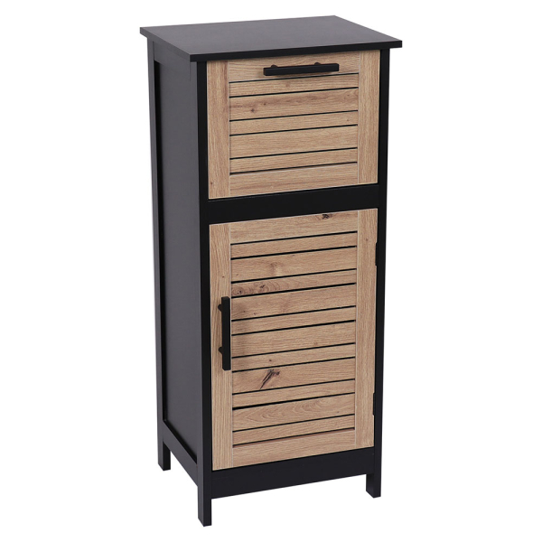 Découvrez le meuble de rangement Saar – parfait pour chaque pièce de la maison ! Cette armoire compacte de Lamento associe une teinte bois moderne à de subtils accents noirs, et s'intègre sans effort dans la salle de bains, le hall d'entrée ou la chambre. Dotée d’un tiroir pratique et d’un placard avec étagère intérieure, elle offre un équilibre idéal entre design et fonctionnalité.