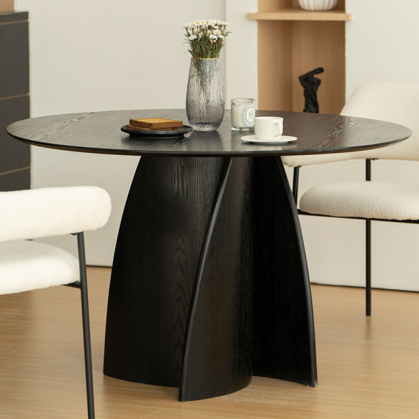 L’association du plateau rond noir et du piètement unique fait de la Kerava une table qui attire les regards sans s’imposer. Que ce soit pour un dîner festif entre amis ou une soirée intime à deux, cette table Milton & Oldbrook sera toujours le centre élégant de votre salle à manger.