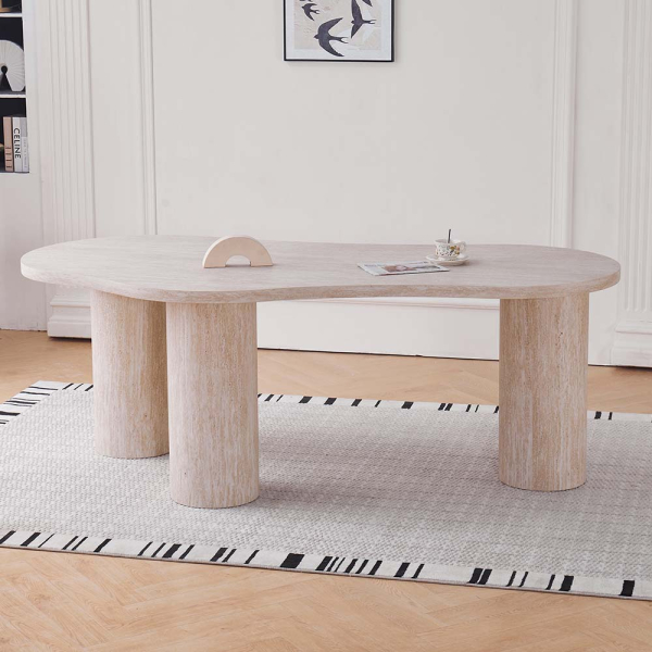 - Finition aspect travertin : L’aspect pierre clair donne à la table une allure naturelle et luxueuse.