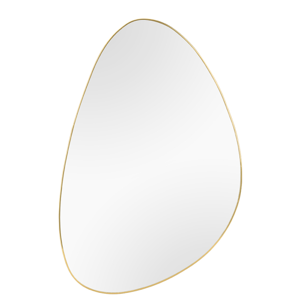 Le miroir mural Bae en or de Shadora ajoute une touche unique au mur. En effet, le miroir mural Bae a une forme asymétrique avec un cadre en métal laqué or. Le miroir doré a un bord fin, ce qui permet au miroir d'ajouter une certaine élégance à votre intérieur. Le miroir asymétrique est magnifique dans différentes pièces et styles de vie, et peut facilement être combiné avec d'autres meubles et accessoires de maison. Le miroir Shadora mesure 40 cm sur 60 cm.
