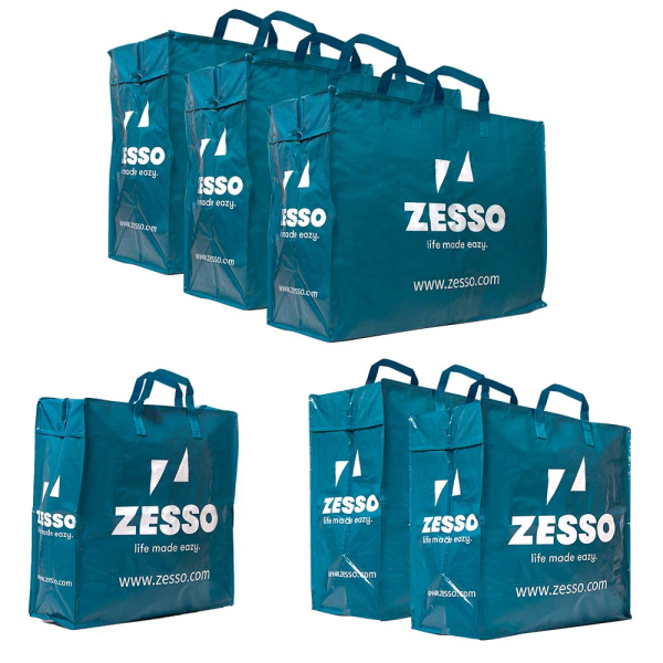Vous recherchez un set de sacs de courses ou de big shoppers que vous souhaitez utiliser comme sac de courses, sac de déménagement ou grand sac de rangement ? Jetez un coup d'œil à tous les sacs Zesso et aux paquets d’avantage sur notre boutique en ligne !