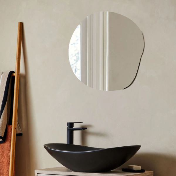 Optez pour une forme organique sur le mur avec le miroir mural Terni de Milton & Oldbrook. Ce miroir asymétrique est entièrement en verre et n'a pas de bordure colorée. Cela lui confère un aspect minimaliste mais élégant. C'est également la raison pour laquelle vous pouvez facilement combiner et placer le miroir dans différentes pièces telles que le salon, l'entrée et la salle de bain. Le miroir mural Milton & Oldbrook peut être monté aussi bien horizontalement que verticalement. Le miroir mural minimaliste mesure 50 cm sur 52 cm et a une épaisseur de 0,8 cm.