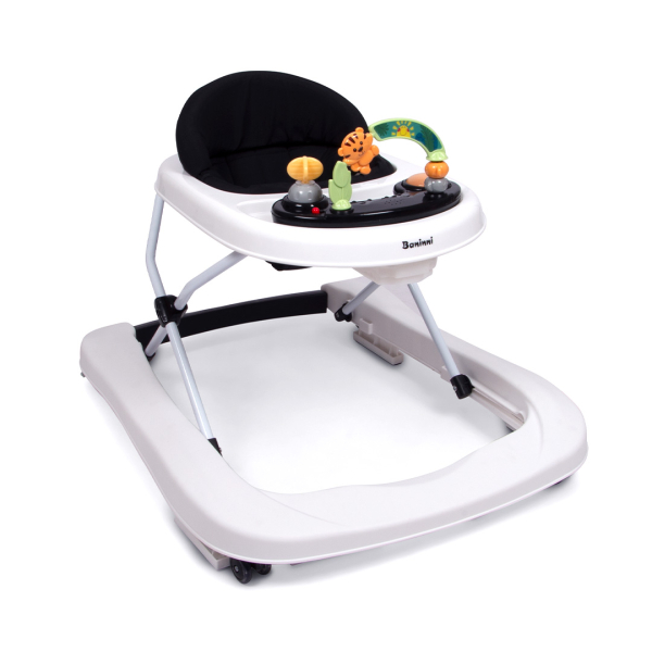 Laat je kindje ontdekken met de Baninni loopstoel Miro. Met de zwart-witte loopstoel kan je kindje zijn eerste stapjes oefenen en leuk spelen. De Miro babywalker is uitgerust met een interactief speelblad met verschillende speeltjes. De verschillende speeltjes dragen bij aan de motorische en sensorische ontwikkeling. De Baninni loopstoel kan je in de hoogte verstellen, en na gebruik makkelijk opvouwen en opbergen. De loopstoel is uitgerust met zachte rubberen parketwieltjes en remblokken. De zwarte bekleding is afneembaar en kan je makkelijk reinigen. De Miro loopstoel is gemaakt voor kinderen vanaf 6 maanden, tot maximaal 12 kg.