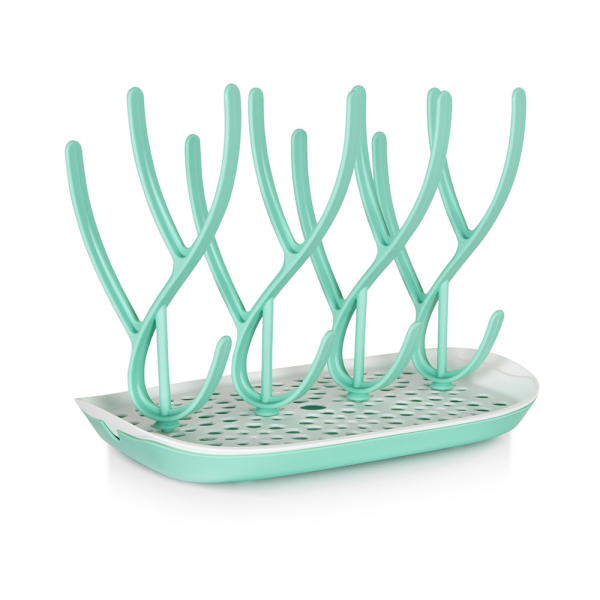 Met het Allora afdruiprekje voor zuigflesjes, speentjes en andere toebehoren hang je alles op een hygiënische wijze te drogen. Het droogrekje bestaat uit 4 flexibele takjes waaraan je tot 8 flesjes kunt ophangen. Dankzij het mooie, praktische design en gebruik van BPA-vrij materiaal zorgt het muntgroene uitdruiprek voor orde en hygiëne op je aanrecht. Het Allora rekje van Baninni is voorzien van een verwijderbaar schaaltje waarin het water kan uitlekken. Zo kan je het droogrekje voor babyvoedingaccessoires ook makkelijk reinigen.