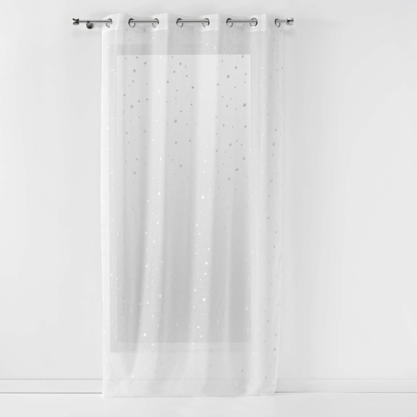 Het Stars gordijn zorgt voor een leuke sfeer in de kinderkamer. Het witte glasgordijn is afgewerkt met 8 metalen ringen waardoor het gordijn makkelijk over de gordijnroede beweegt en mooi in de plooi valt. Het glasgordijn met sterren heeft een standaardmaat van 140 cm op 240 cm en is geschikt voor de meeste ramen. Het Stars gordijn is niet verduisterend waardoor er veel licht doorkomt. Het leuke aan dit kinderkamer gordijn is dat de sterren licht geven in het donker. Je kan het voile gordijn makkelijk reinigen op 30°C in de wasmachine.