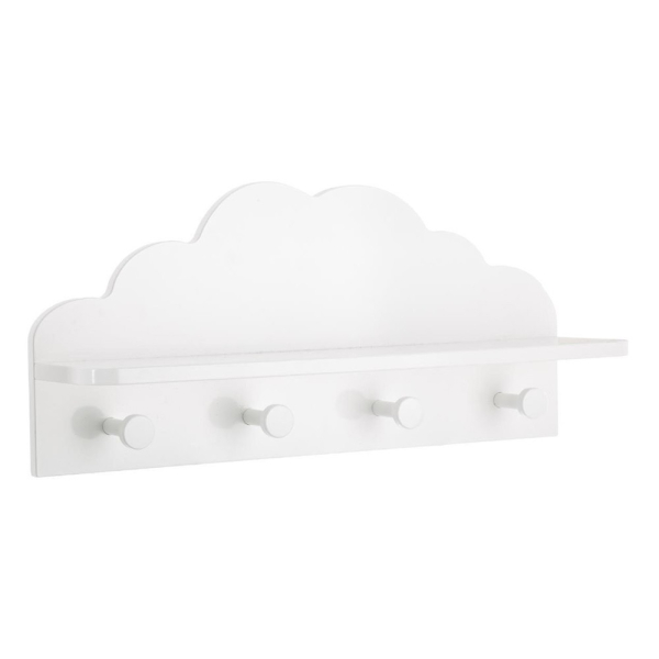 De dromerige Julie wandkapstok van Eazy Living brengt een feërieke sfeer in een kinderkamer, tienerkamer of speelkamer. De witte kapstok voor kinderen heeft een legplank en 4 haken voor kleding en accessoires zoals kamerjassen, tassen en verkleedkleren. De legplank is 48 cm lang en 12 cm diep, perfect voor kleine spulletjes en prulletjes. Deze witte wolkjeskapstok is gemaakt van licht hout en is gemakkelijk aan de wand te bevestigen.