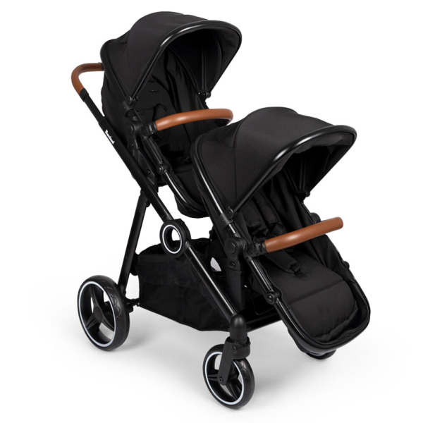 In de Luiz duo kinderwagen van Baninni kan je jouw kindjes overal mee naartoe nemen. Deze praktische buggy is verstelbaar op allerlei manieren zodat de kleintje steeds in de meest comfortabele positie kunnen mee reizen. Elk zitje kan afzonderlijk versteld worden. Bovendien kan deze Luiz kinderwagen ook als enkele wandelwagen gebruikt worden. De ziteenheden kunnen omgevormd worden tot reiswiegen zodat je kindjes ook kunnen slapen in de buggy. Ook kunnen ze tegenover mekaar gezet worden en kunnen je kindjes elkaar zien. De met kunstleer afgewerkte duwbeugel is in hoogte verstelbaar en de zwenkwielen zorgen voor vlotte bewegingen. De Luiz kinderwagen is geschikt als tweeling buggy of duo buggy voor een baby en een peuter (0 tot 36 maanden, max. 22 kg/zitje).