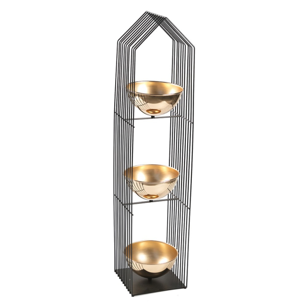 Op zoek naar een decoratief meubel voor je planten? Het Haldi rek van Baytex is allereerst een design statement. De combinatie van zwart en goud is erg eigentijds en zorgt voor stijl en klasse in je woonruimte. Het rek is gemaakt van zwart gecoat metaal en heeft 3 goudkleurige schalen met een diameter van 21 cm. De schalen kunnen van het frame afgedraaid worden om ze zo gemakkelijk te reinigen. De Haldi constructie staat op zich al mooi in je ruimte, maar kan ook opgesmukt worden met een kunstplant, kaars of andere decoratie. Het rek is 1 meter hoog, 22 cm lang en 21 cm breed. Het weegt slechts 3,75 kg dus kan gemakkelijk verplaatst worden.