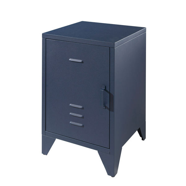 Dit blauwekinderkamer nachtkastje uit de Shaw collectie van Dream Tree heeft een industrieel design en is gemaakt van metaal. De kleine lockerkast heeft een metalen deur en is binnenin voorzien van een legplank die het kastje verdeeld in 2 niveaus. Dit blauwe metalen nachtkastje voor de kinderkamer is 60 cm hoog. Om de industriële look van de kinderkamer helemaal af te maken, plaats je dit blauwe nachtkastje naast het Shaw kinderbed.