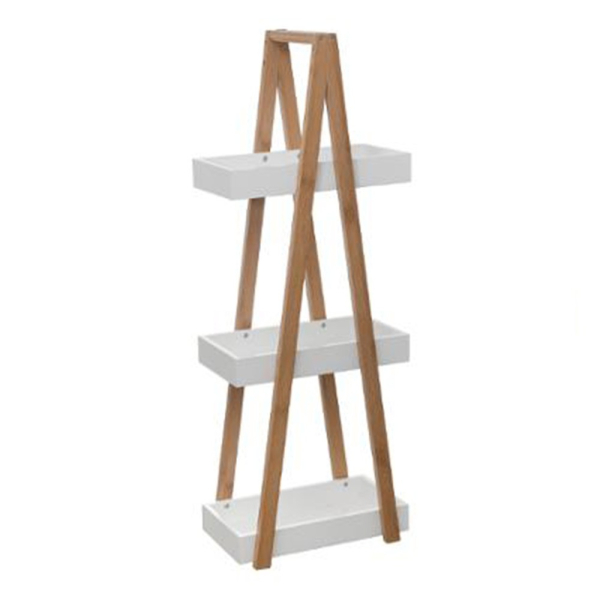 Het Baptiste badkamerrek van Eazy Living is een modern en minimalistisch opbergrek voor je natte ruimtes. Het heeft 3 witte MDF opbergvakken van 18 x 30 cm waar je al je toiletspullen en badkamerartikelen in kan ordenen. Het frame is gemaakt van bamboe, een duurzame, milieuvriendelijke en hedendaagse houtsoort die goed tegen vocht kan. Het rek heeft een totale hoogte van 82 cm en kan zowel in de hoek, tegen een wand als vrijstaand geplaatst worden. Het is eenvoudig te monteren en kan gemakkelijk verplaatst worden.